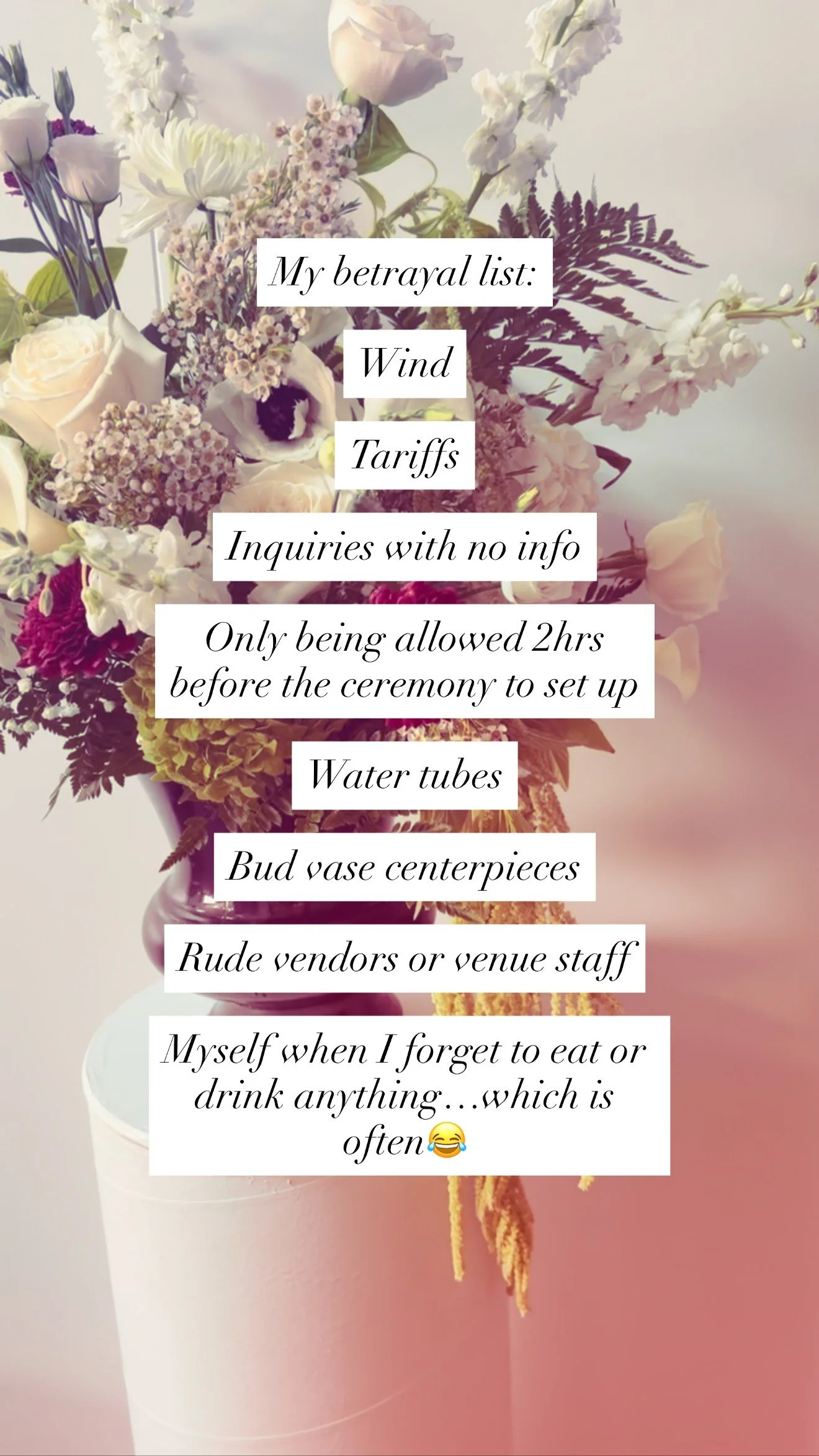 After over two decades working professionally in the theater, I traded spotlights for sunlight and curtain calls for flower hauls. Now I perform with flowers instead of actors, composing living scenes that capture the drama, joy, and beauty of your most important moments! It may be a different stage, but it’s still with the same storytelling heart <3.